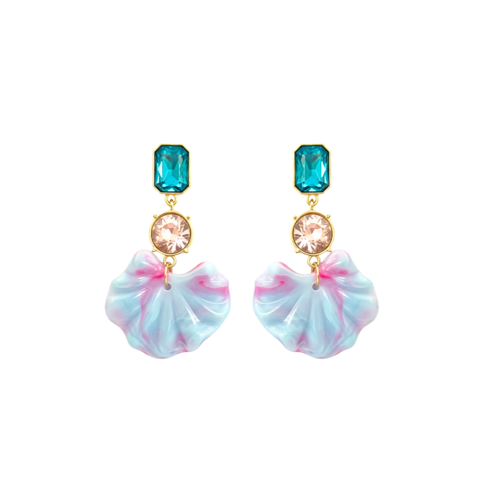 Brinco Concha com Pedras Resina — design refinado com detalhes em resina e pedras que destacam brilho e elegância em cada detalhe.