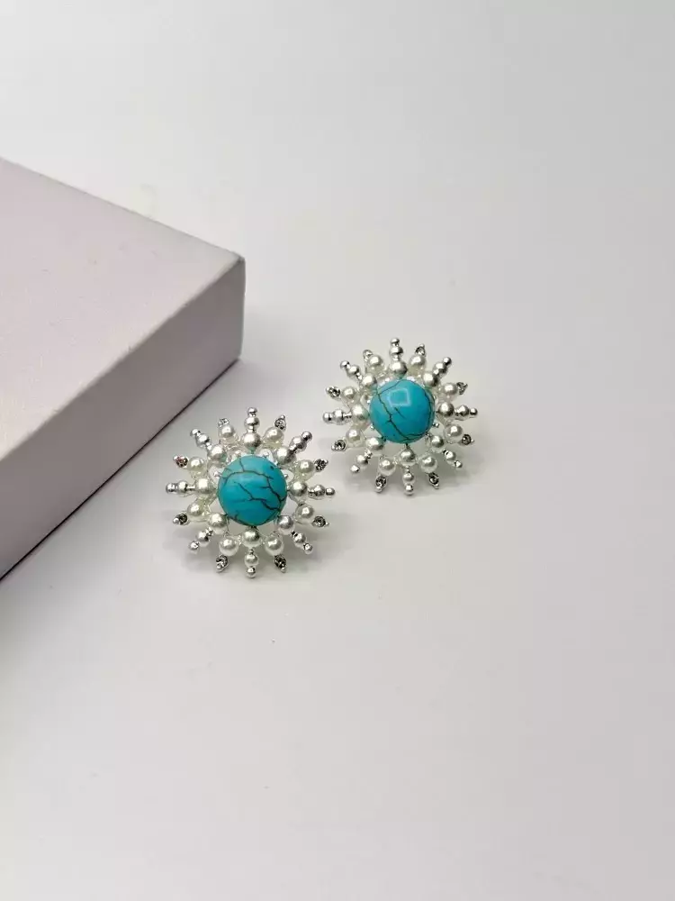 Brinco em metal fosco com pedra reconstituida,perolas e strass.