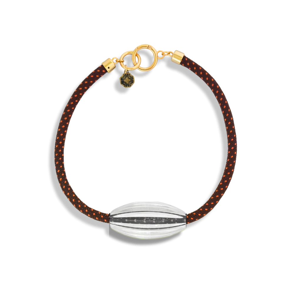 Colar em corda com detalhe em acrílico e fecho em metal.