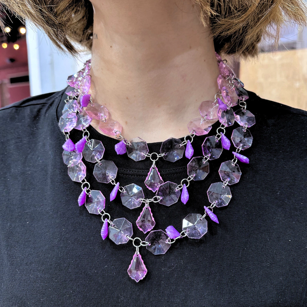 Inspirado na beleza e transparência do cristal, o colar é composto por múltiplas camadas que criam um efeito cascata no colo.